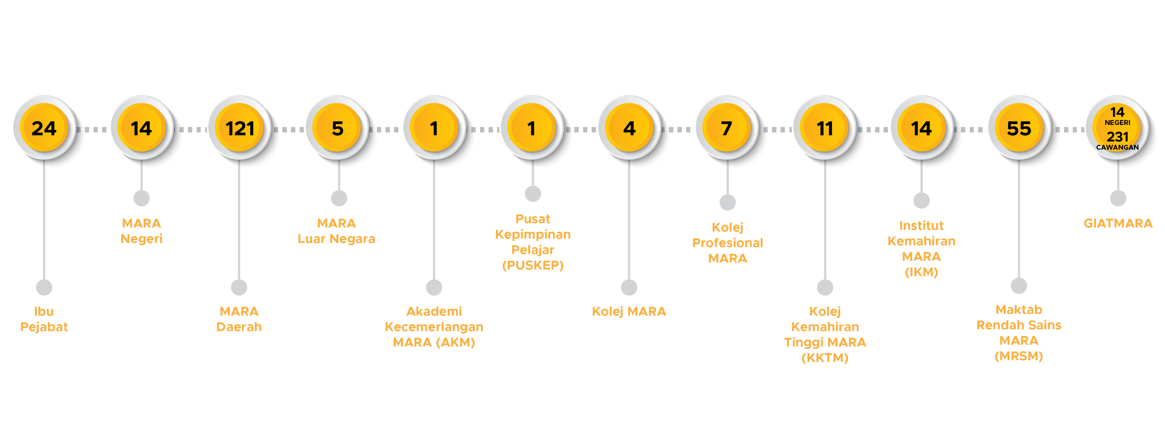 Organisasi MARA turut diperkukuhkan lagi dengan 16 buah subsidiari yang peranan penubuhannya bertanggungjawab memajukan tiga teras sektor utama MARA.