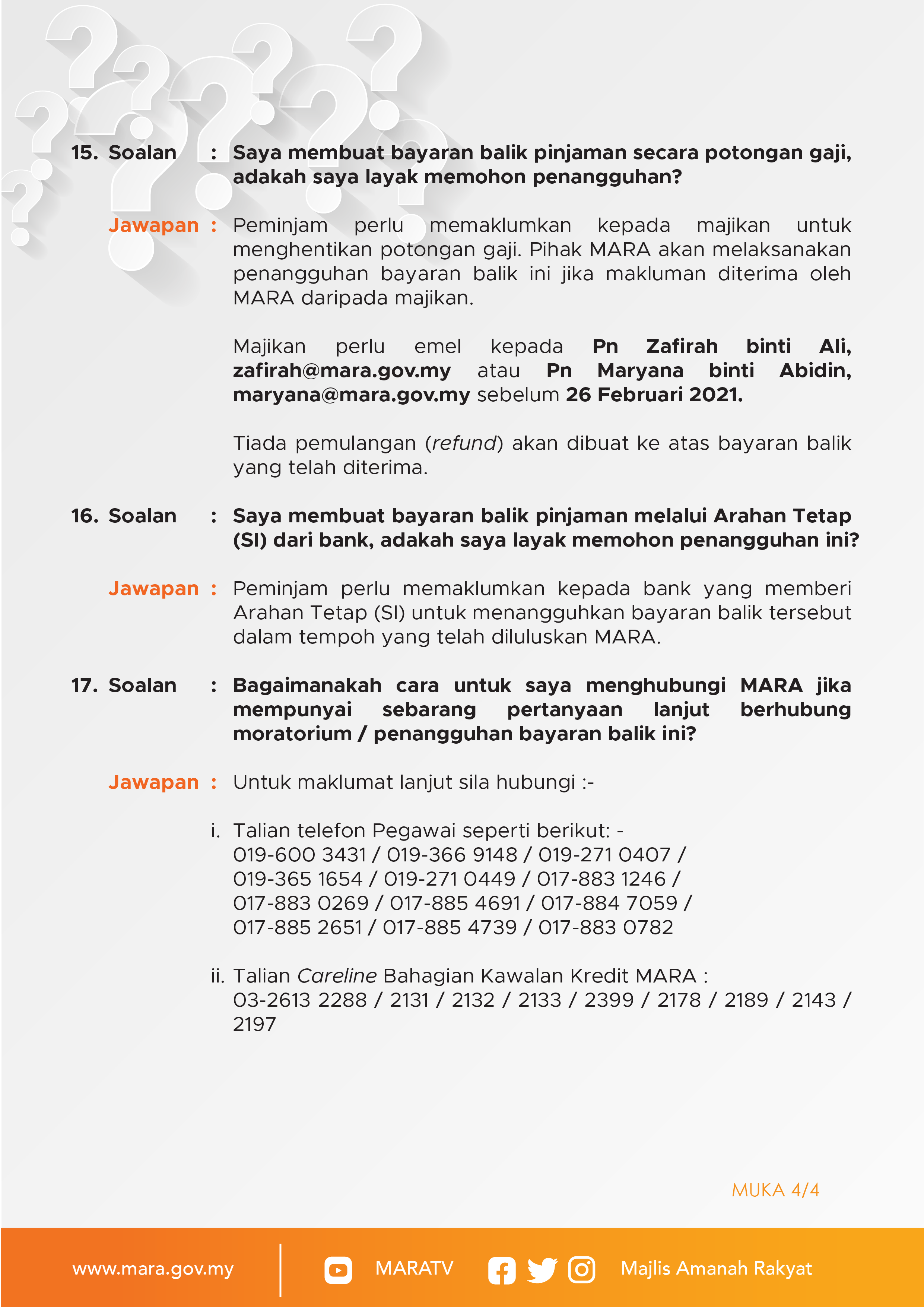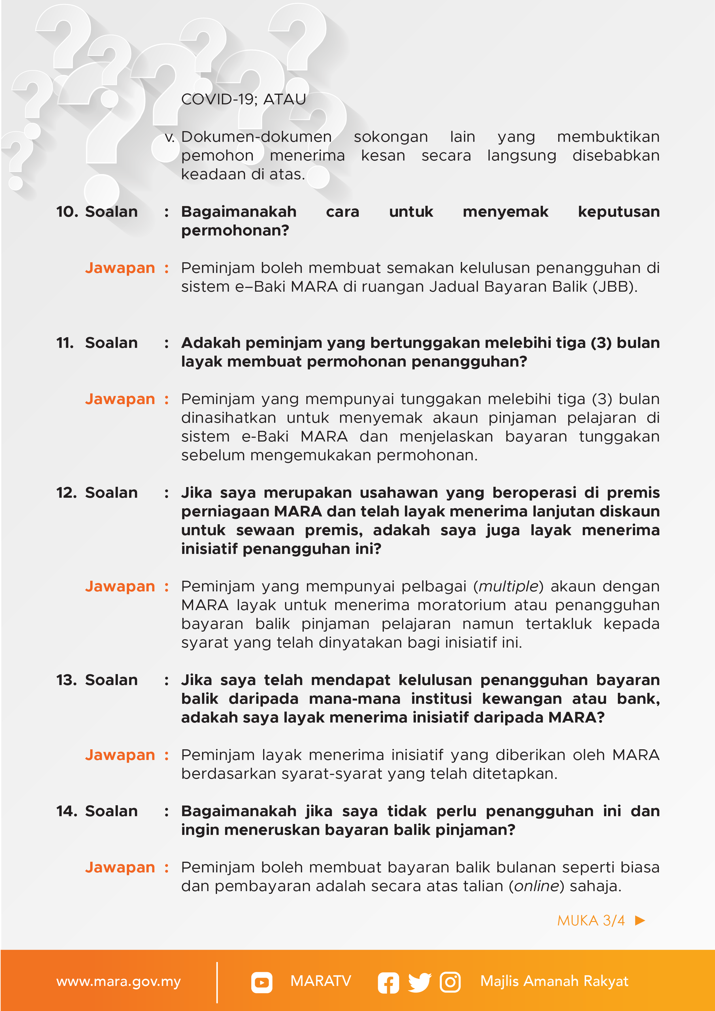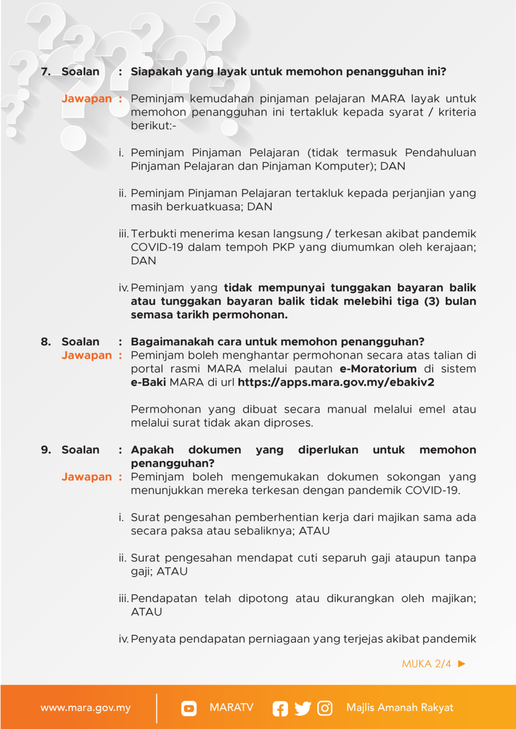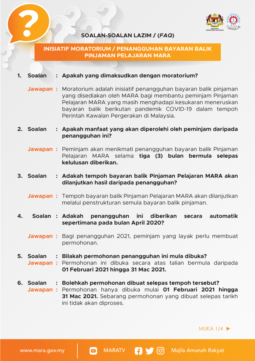 INISIATIF MORATORIUM / PENANGGUHAN BAYARAN BALIK PINJAMAN PELAJARAN MARA