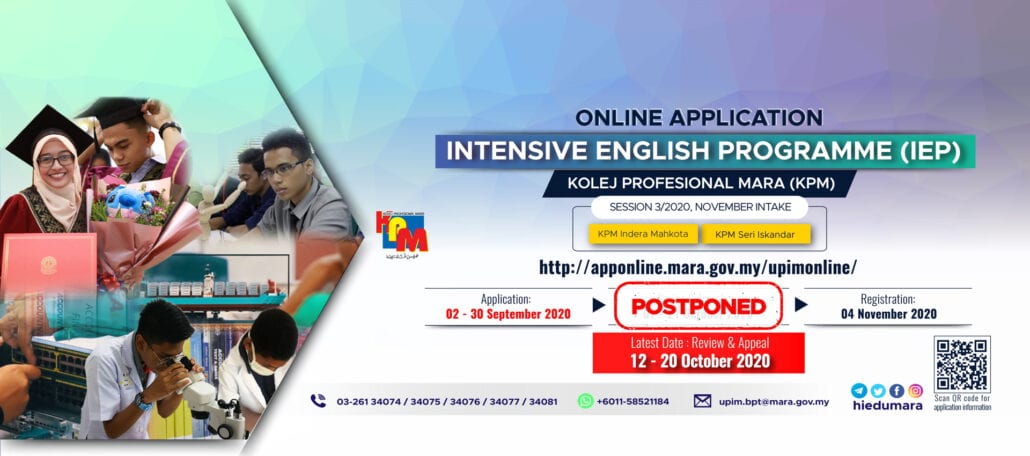 Application Results & Appeal of Kolej Profesional MARA (KPM) Intensive English Programme (IEP) 3/2020 Session November Intake