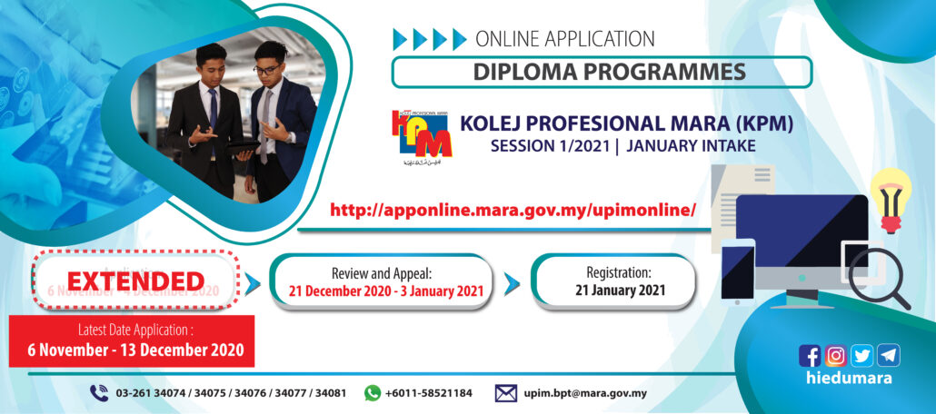Application to Diploma Programmes for Kolej Profesional MARA (KPM) Session 1/2021 January Intake.