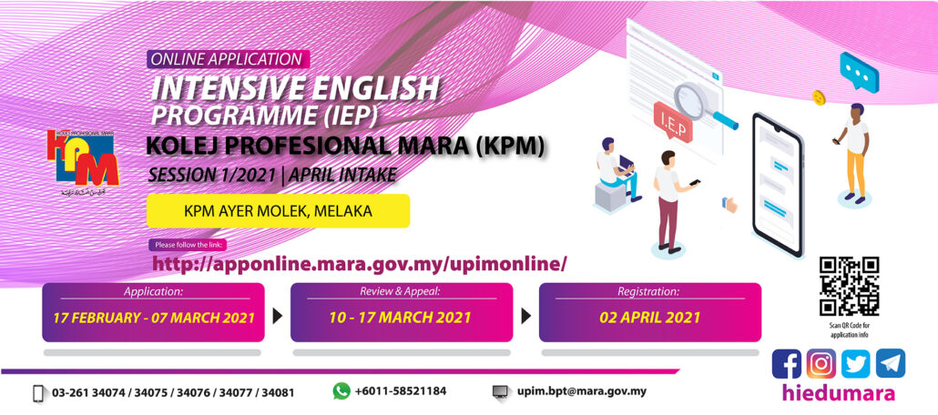 Application to Intensive English Programme (IEP) for Kolej Profesional MARA (KPM) Session 1/2021 April Intake