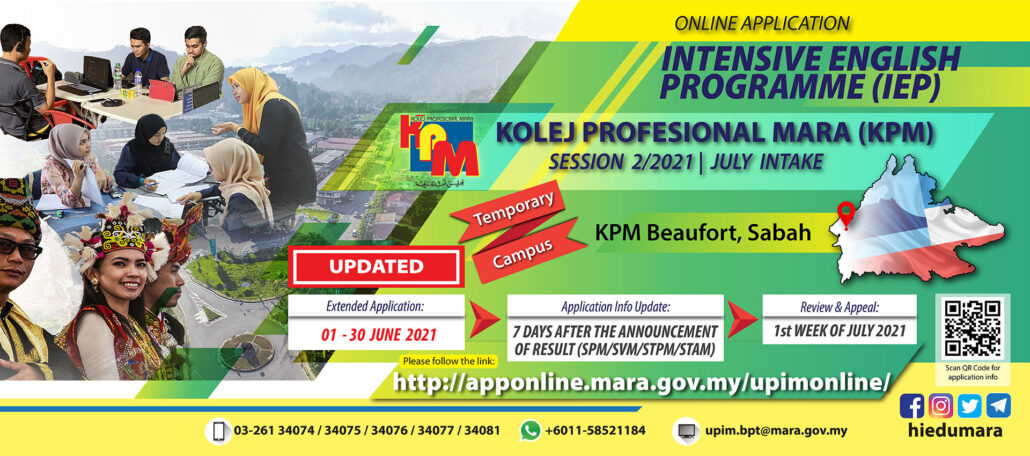 Application to Intensive English Programme (IEP) for Temporary Campus of Kolej Profesional MARA (KPM) Beaufort, Sabah Session 2/2021 July Intake