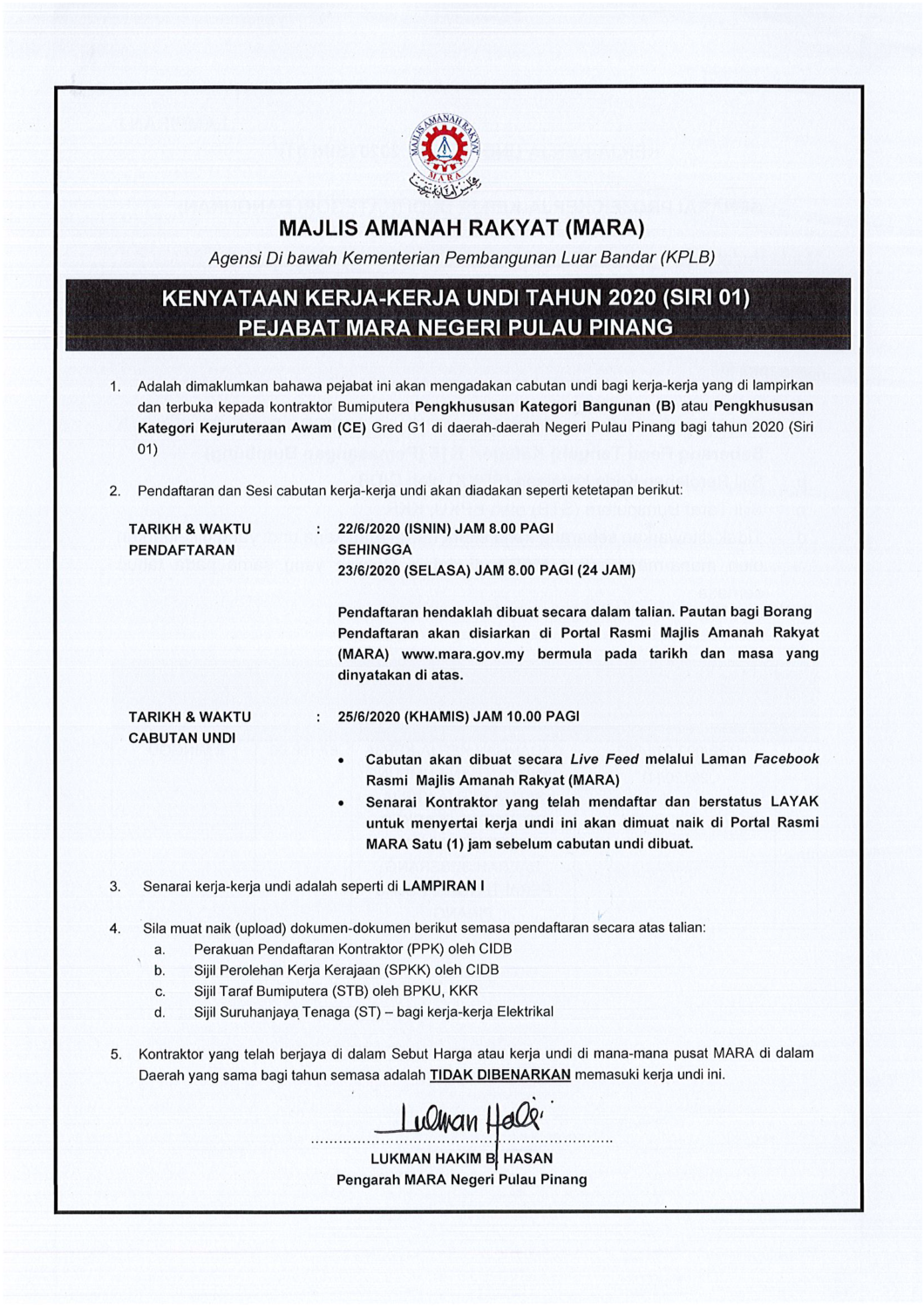 BIL KERJA-KERJA UNDI SIRI 01 SENARAI PROJEK  STATUS PENDAFTARAN KONTRAKTOR