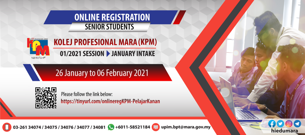 Online Registration of Senior Students for Kolej Profesional MARA (KPM) Session 1/2021 January Intake
