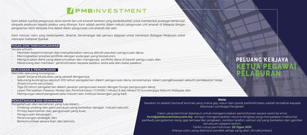 Peluang Kerjaya Ketua Pegawai Pelaburan PMB Investment