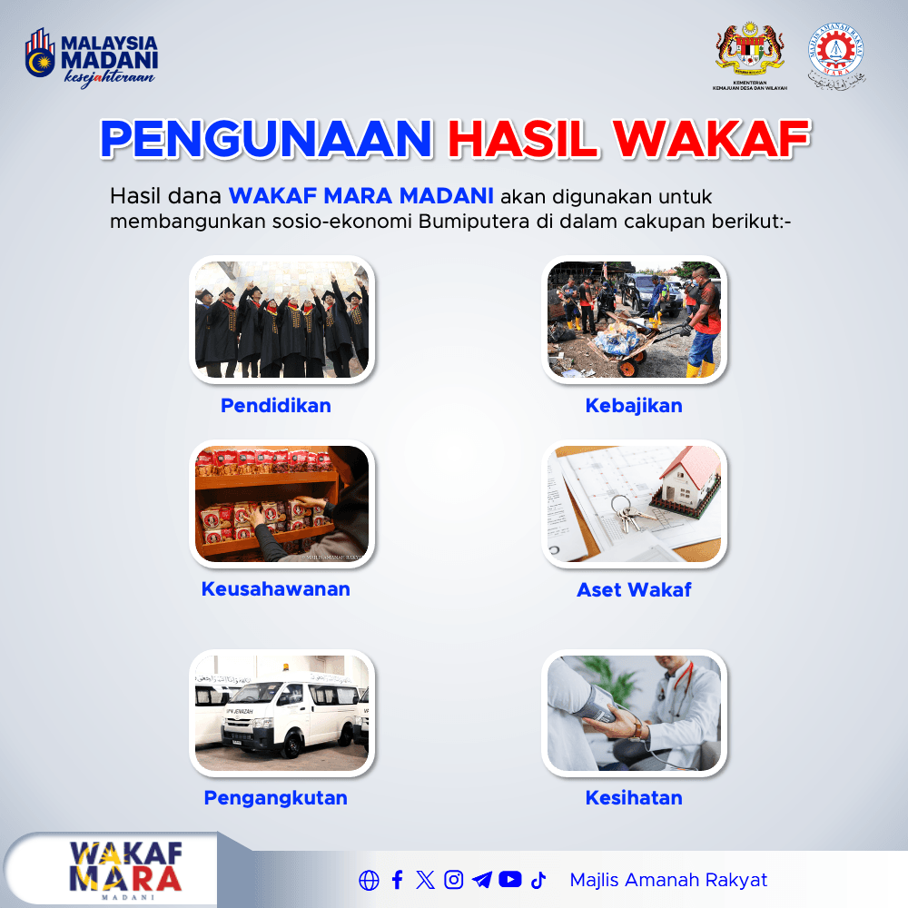 3. Untuk permulaan ini, skop agihan manfaat Wakaf MARA MADANI adalah seperti berikut:
