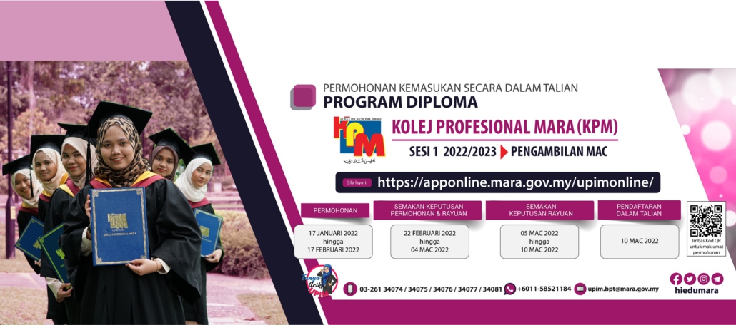 Permohonan Program Diploma Sesi 1 2022/2023 Pengambilan Mac ke Kolej Profesional MARA (KPM)
